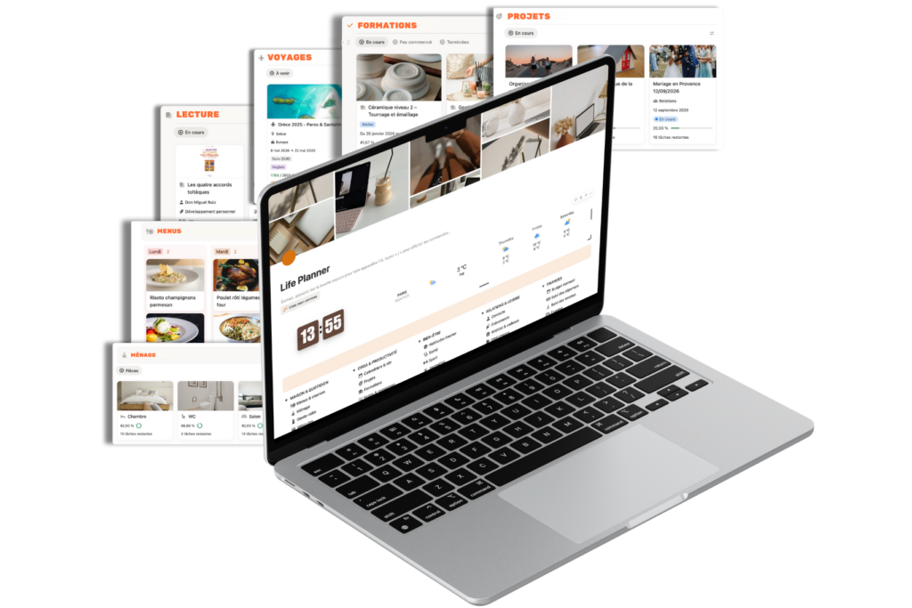 Experte en organisation et optimisation, j’aide les personnes à reprendre le contrôle sur leur quotidien grâce à des outils clairs, personnalisés, et concrets.